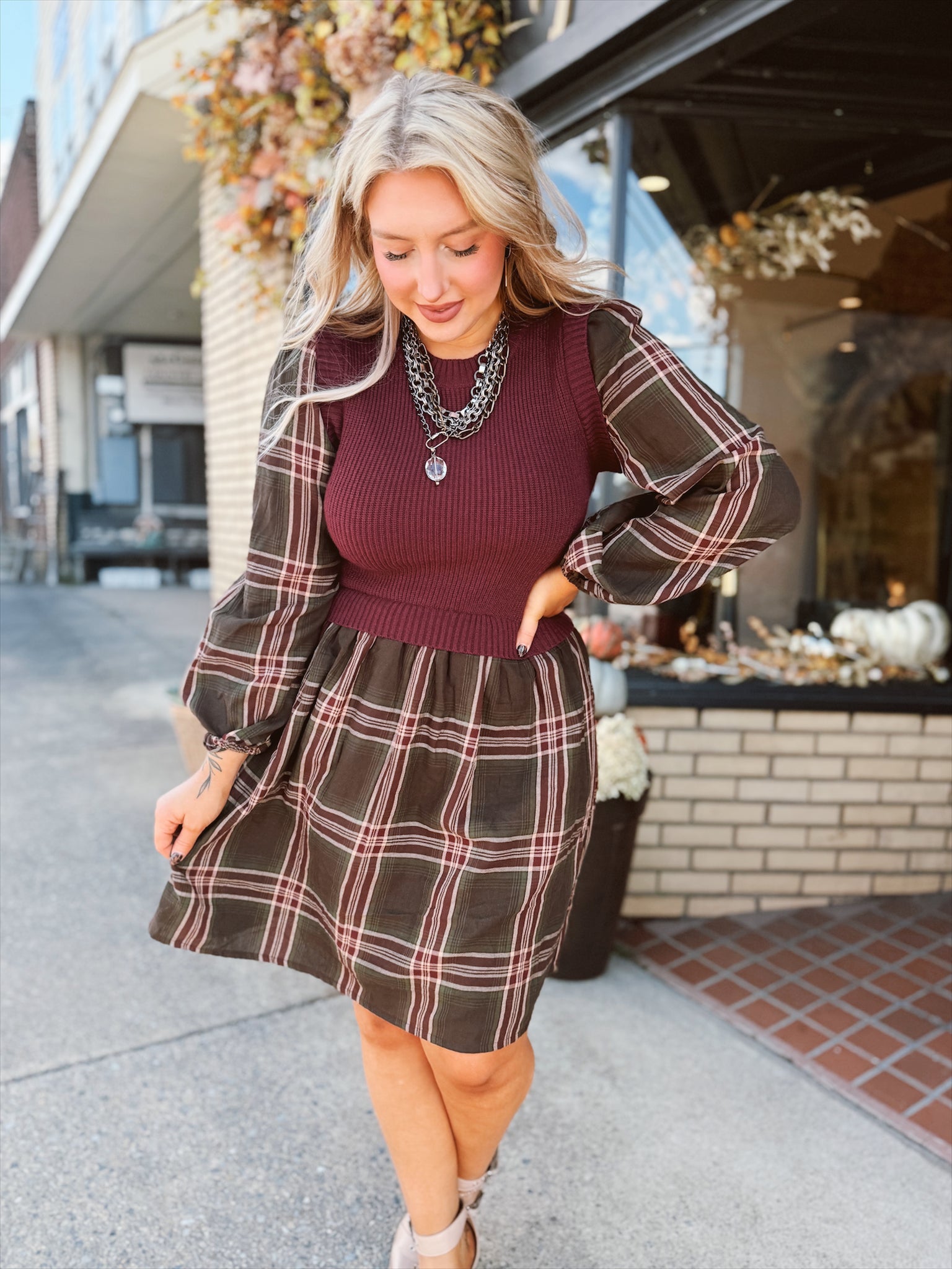This one is named after the one and only Paris Geller (iykyk) — this is such a Yale look! Featuring a classic plaid skirt and sleeve style with a burgundy sweater vest overlay.