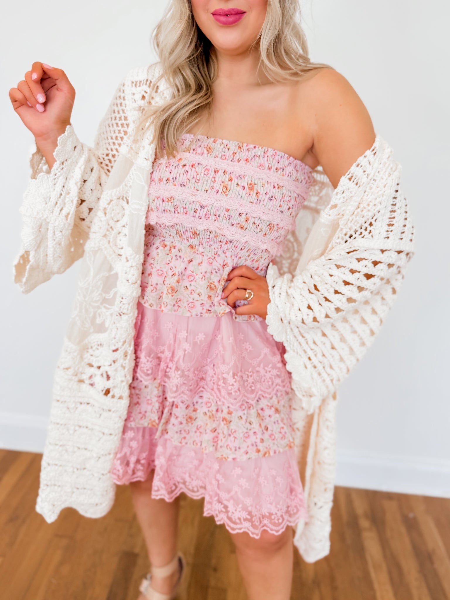 Two looks in one and zero effort required. This floral print smocked piece features a thick, stretchy smocked band that stays comfortably in place and a flowy skirt bottom for easy movement. Wear it strapless as a dress or fold it down as a skirt — perfect for vacations, weekends, and everything in between.