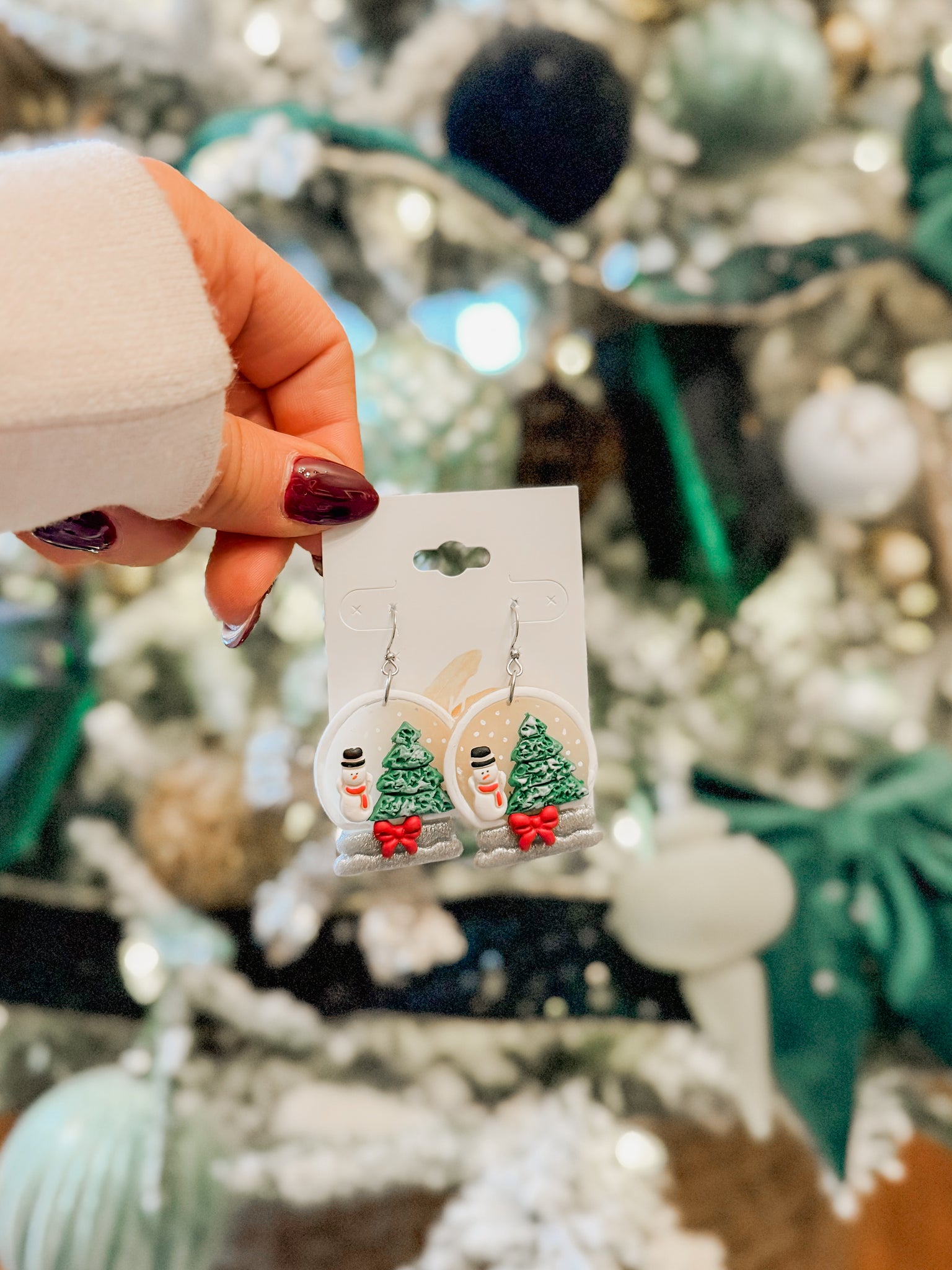 Clay holiday earrings on a hook back with silver hardware.