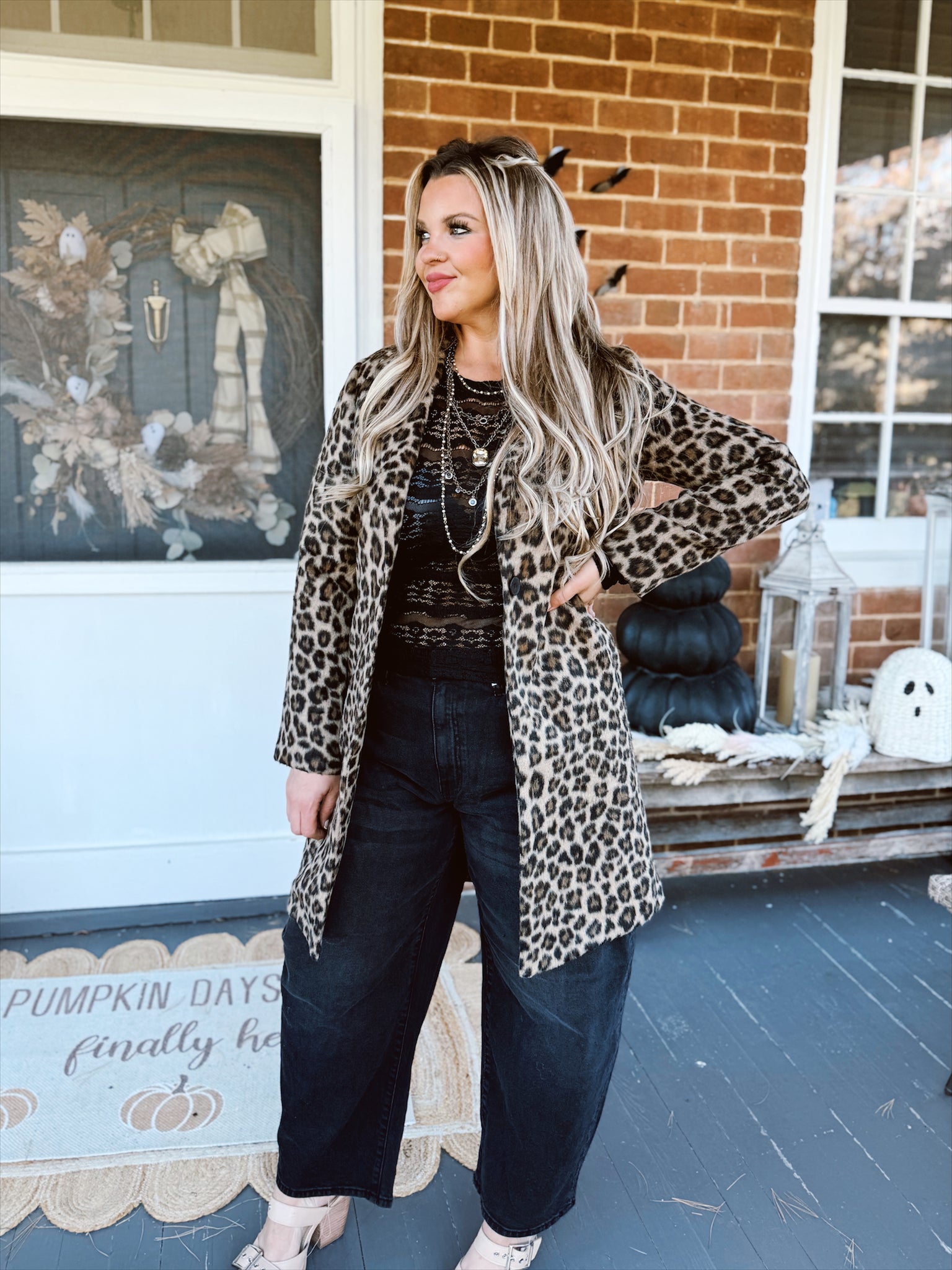 Turn heads in this chic and timeless leopard print coat. Designed with a tailored silhouette and single-button closure, it’s the perfect statement piece to elevate any outfit. The soft, midweight fabric offers both comfort and warmth, while the bold animal print adds a touch of confidence and flair. Pair it with denim for an everyday edge or layer it over a dress for a night out—you’ll reach for this coat season after season.