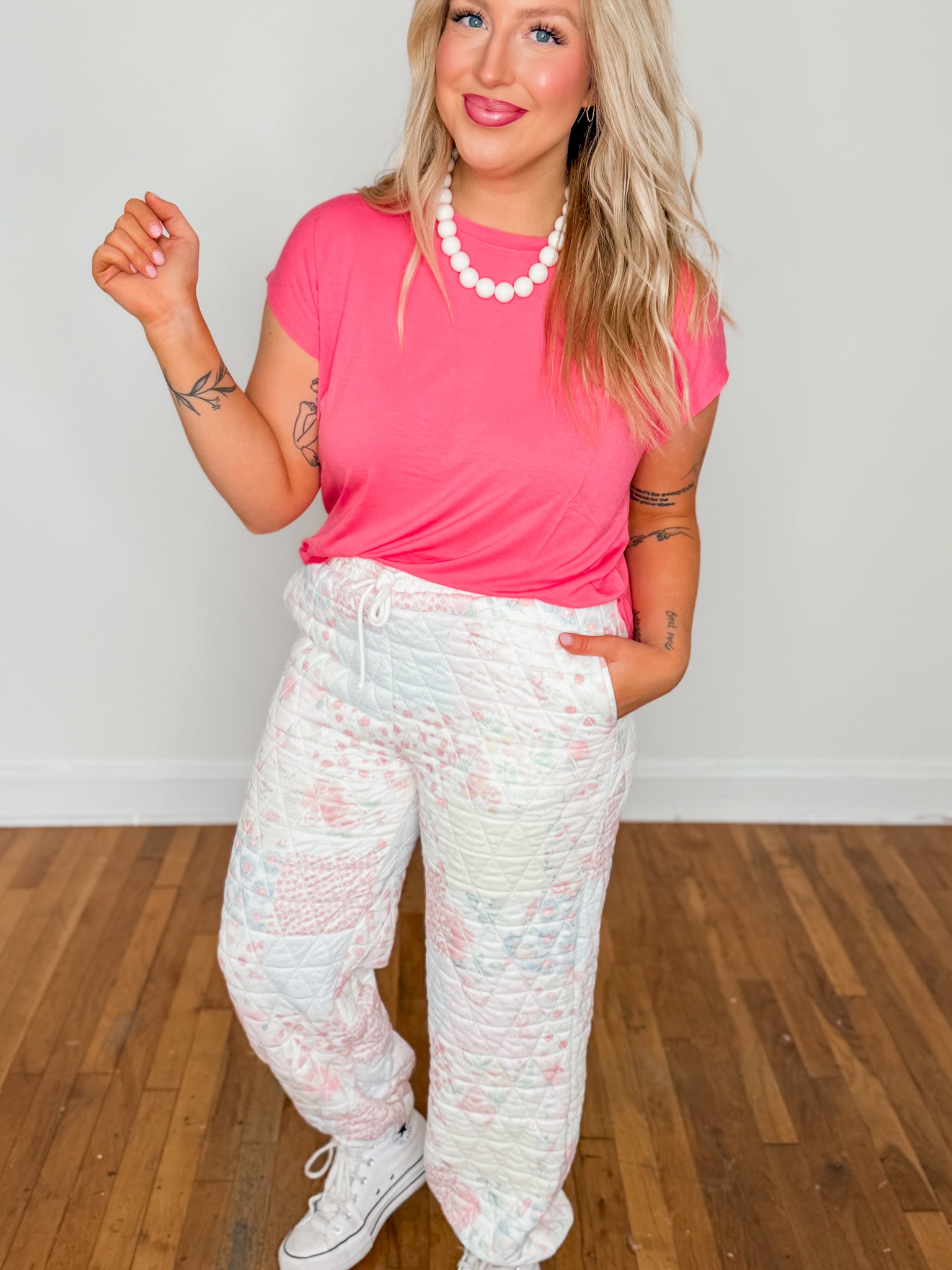 Unlike basic tees that cling or lose shape, this one skims the body for a flattering, laid-back feel that works for everyday life. The soft, stretchy fabric moves with you, making it perfect for busy days at the boutique, school pickup, or weekend errands.