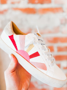 Step out in style with SUNNY - Embroidered Sneakers. Made from soft vegan leather, they feature a vibrant sun pattern and glittery accents. Comfortable and perfect with denim for a standout look.