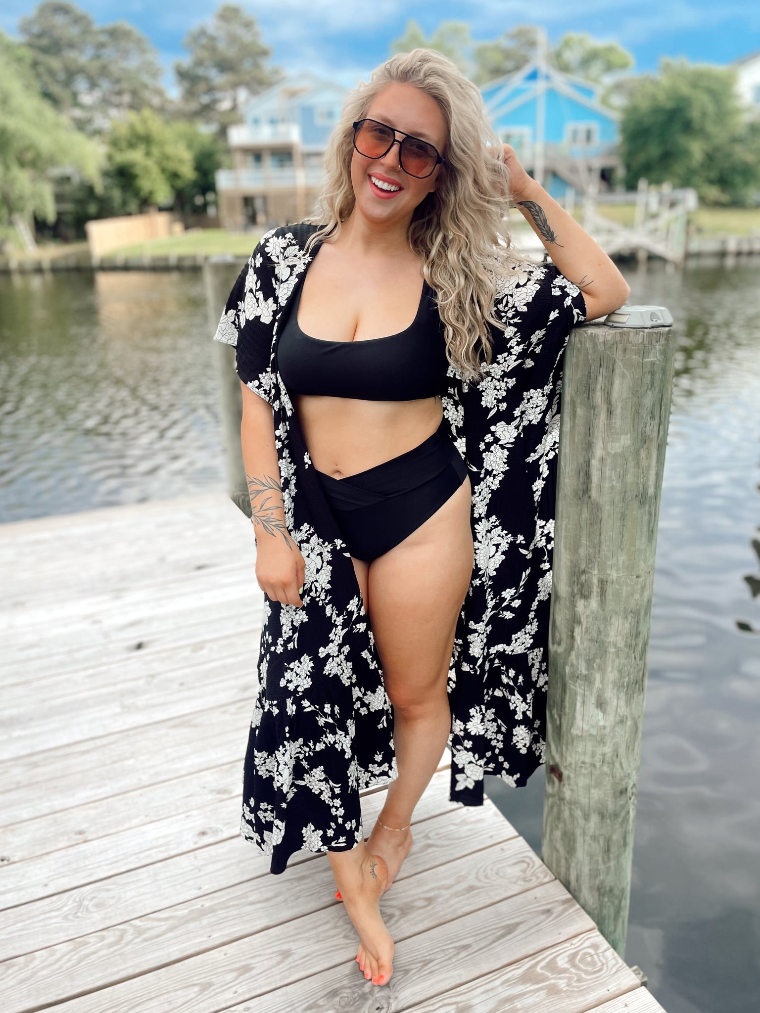 Designed with an open front, side slits, and short wide sleeves, all over floral print, ruffled tiered hem. This kimono will make an easy upgrade to your outfit. Features a chic and effortless silhouette.