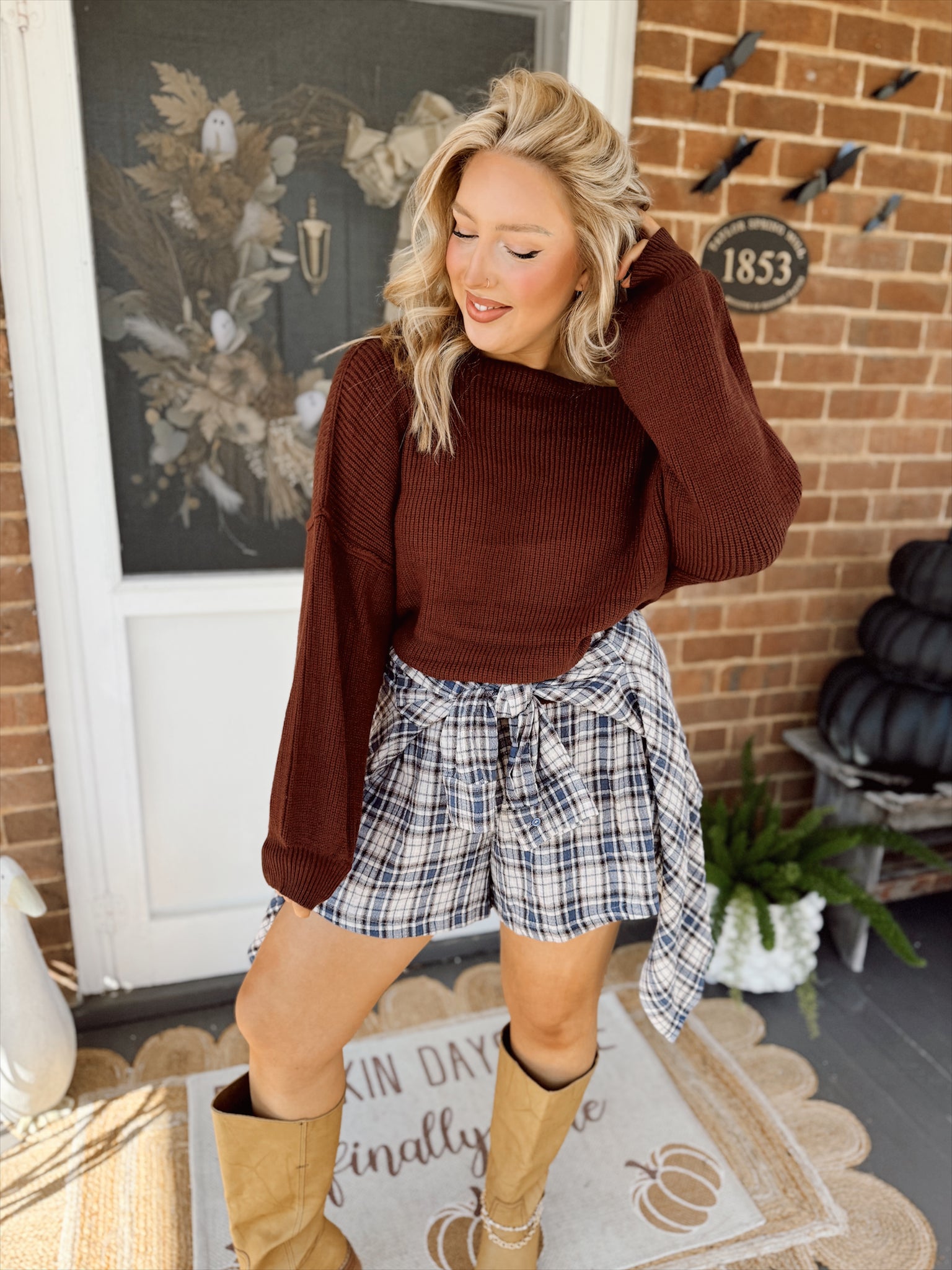 Boat neck long sleeve sweater with a slouchy off the shoulder style. Perfect with denim or skirts!