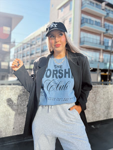 Comfort colors denim color graphic tee with Worship Club Tee.